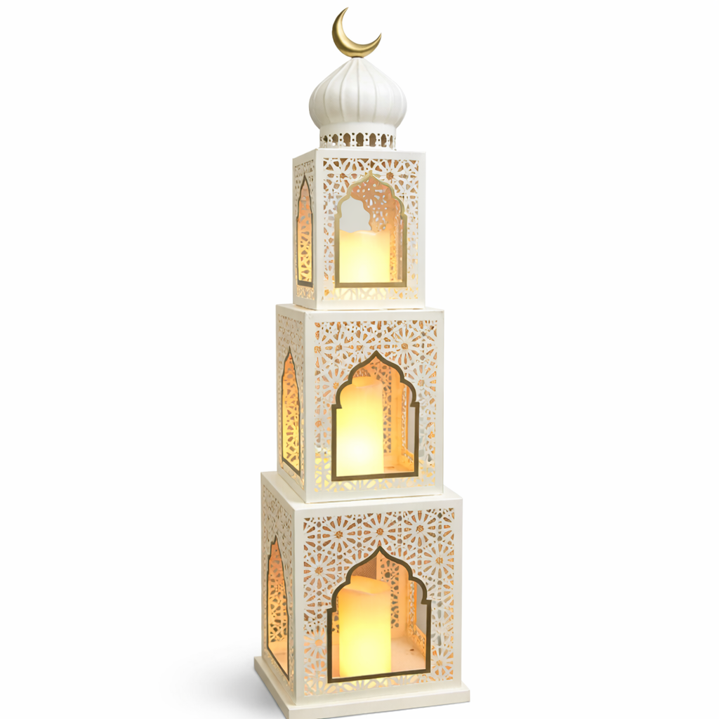 (preorder for jan15-20). 3.1 FT Ramadan Metal Lantern Tower Decor (Candles Included) Ramadan Moon Lantern Tower – 3.1 Ft Metal Decor with LED Candles
