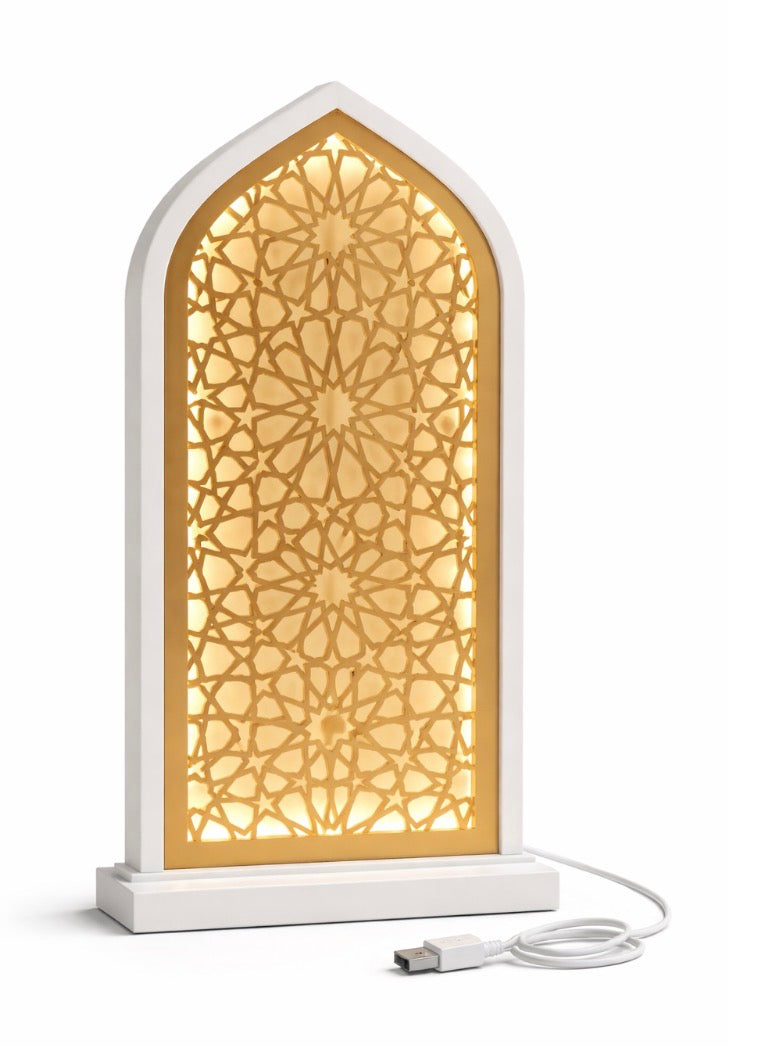 Wooden Islamic Geometric Arch LED Decor (USB Powered) – 24.4” Tall ✨